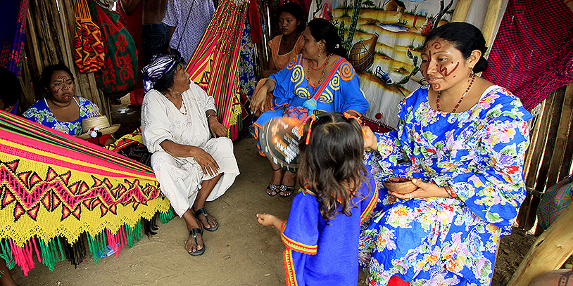 BOG01. URIBIA (COLOMBIA), 26/08/2012.- FotografÌa del 17 de junio de 2012 de indÌgenas Wayuu, etnia que habita en la Guajira (Colombia). El conflicto armado interno y la pobreza han puesto en riesgo a muchos de los 102 pueblos indÌgenas de Colombia, paÌs con una poblaciÛn aborigen de poco m·s de 1,37 millones que equivale apenas al 3,36 por ciento del total nacional. Son 34 los pueblos indios colombianos que est·n en peligro de extinciÛn por efecto de la confrontaciÛn y el hambre, pero tambiÈn por otros factores, seg˙n un estudio del Programa de las Naciones Unidas para el Desarrollo (PNUD) divulgado en Bogot· hoy, domingo 26 de agosto de 2012. EFE/RICARDO MALDONADO ROZO